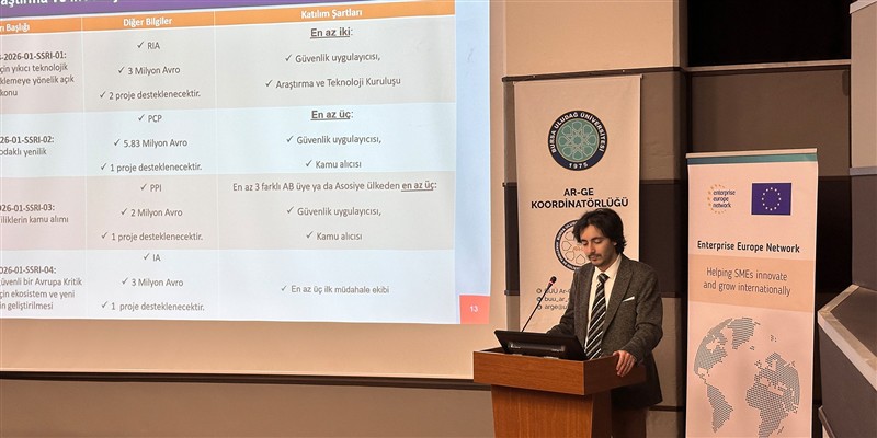 TÜBİTAK, Bursa Uludağ Üniversitesi Ar-Ge Koordinatörlüğü, ULUTEK Teknopark ve Enterprise Europe Network iş birliğiyle, Avrupa Birliği’nin en büyük araştırma ve yenilik programı olan Ufuk Avrupa Programı kapsamında; üniversite-sanayi iş birliklerini güçlendirmek ve proje geliştirme kapasitesini artırmak amacıyla düzenlenen “Bursa Uludağ Üniversitesi Ufuk Avrupa Programı Bilgi Günü”, ULUTEK Teknopark ev sahipliğinde gerçekleştirildi.