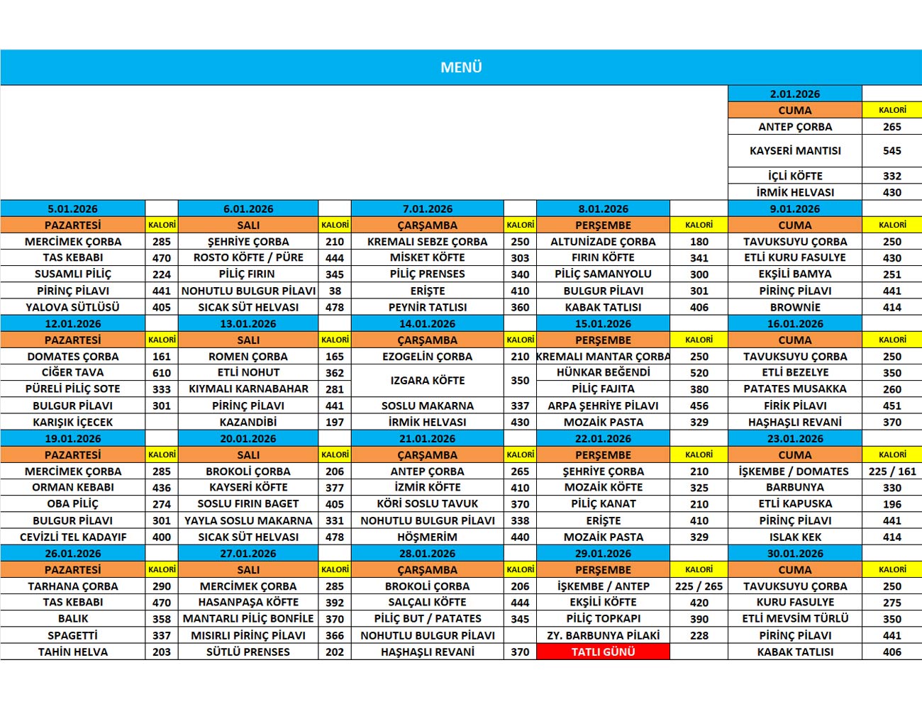 Yemek Listesi